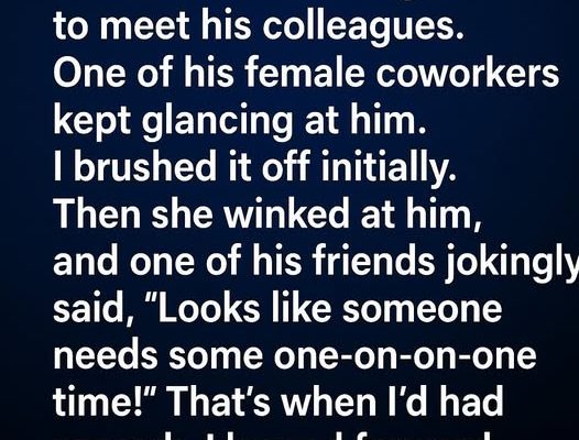 My husband’s company hosted a big event, and it was the first time I got to meet his colleagues. One of his female coworkers kept glancing at him. I brushed it off initially. Then she winked at him, and one of his friends jokingly said, “Looks like someone needs some one-on-one time!” That’s when I’d had enough. I leaned forward and said loudly, “Actually, he already has all the one-on-one time he needs—at home, with his wife.” The table went quiet for a moment, and then laughter broke out, easing the tension.
