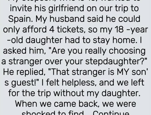 My 16 y.o. stepson wants to invite his new girlfriend on our trip to Spain. My husband agreed but said he can’t afford more than 4 tickets, so we have to leave my 18 y.o. daughter at home. I was furious and blamed him for choosing a stranger over his own stepdaughter whom he’d been raising since she was 7. He replied,